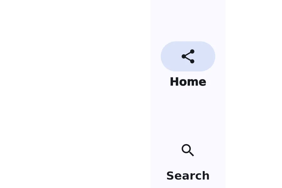 import { NavigationRail } from "./material.slint";export component Example inherits Window { width: 400px; height: 300px; background: transparent; NavigationRail { width: 80px; height: parent.height; items: [ { icon: @image-url("../icons/share.svg"), text: "Home" }, { icon: @image-url("../icons/search.svg"), text: "Search" } ]; }}